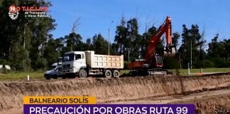 Precaución por obras en ruta 99 (Balneario Solís) Un solo carril...